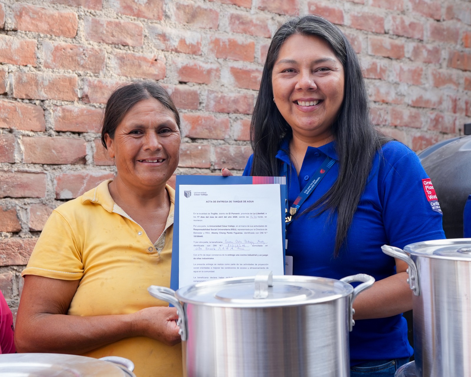 En una muestra concreta de compromiso con las comunidades más vulnerables, la Universidad César Vallejo (UCV), a través de la Dirección de Bienestar y Responsabilidad Social Universitaria, realizó la entrega de equipamiento esencial al comedor popular “Mujeres Emprendedoras”, ubicado en el sector Villa Hermosa, en el distrito de El Porvenir.