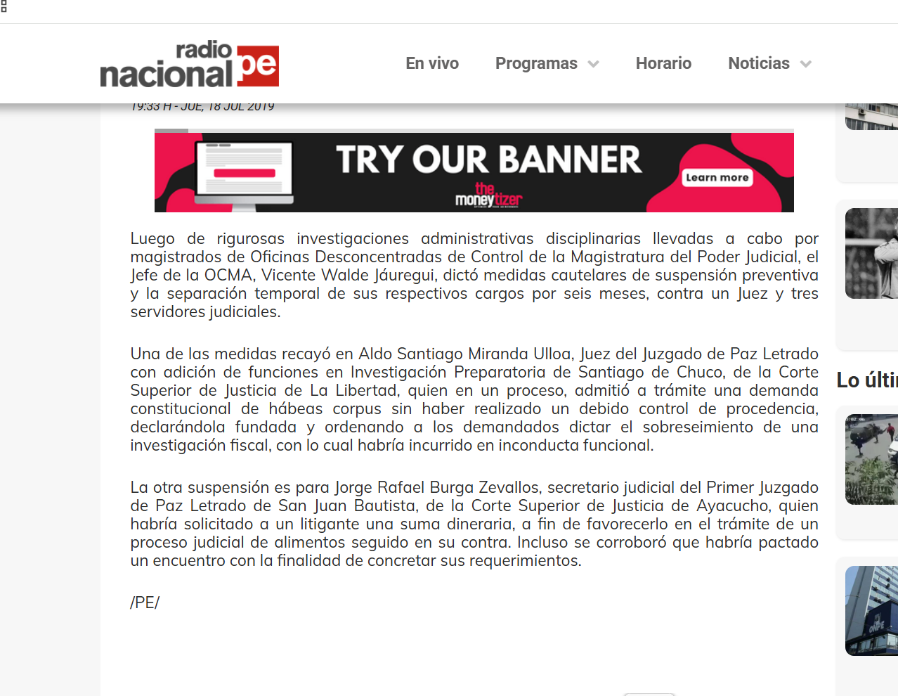 Este nuevo episodio no es aislado. En julio de 2019, el mismo magistrado fue objeto de una medida cautelar de suspensión preventiva dictada por la Oficina de Control de la Magistratura (OCMA), tras detectarse presuntas irregularidades en el trámite de un proceso constitucional de hábeas corpus. En ese entonces, se le atribuyó haber admitido una demanda sin realizar el debido control de procedencia, disponiendo incluso el sobreseimiento de una investigación fiscal, lo que fue calificado como una posible inconducta funcional.